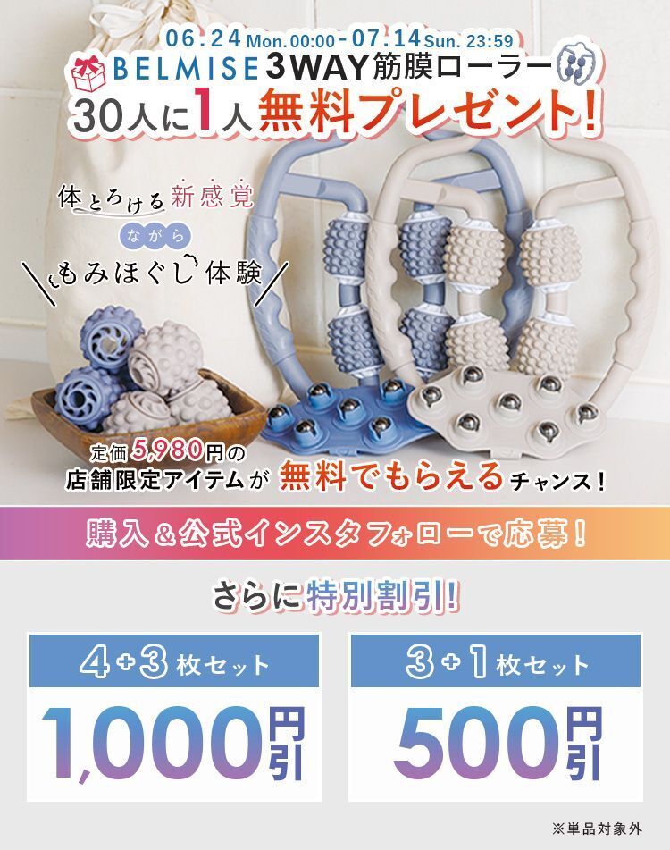 ※7枚セットの差額+筋膜ローラーの通常単品総額+最大クーポン金額