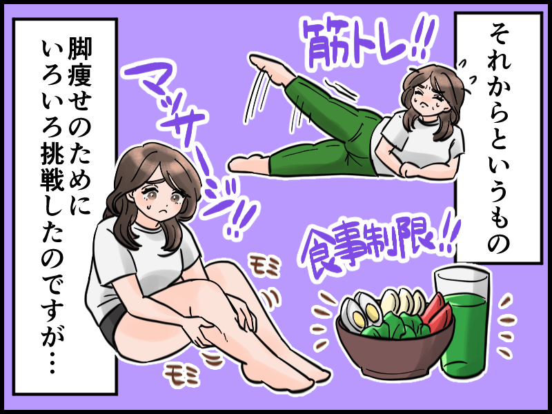 今までマッサージしてもパンパンで太い脚に悩んでました。そんなとき友人に教えてもらい試してみると、今まで悩んでたのがウソみたいにスッキリ!!下半身太りの救世主に出会えて自分のスタイルに自信が出てきました♡