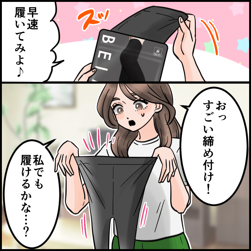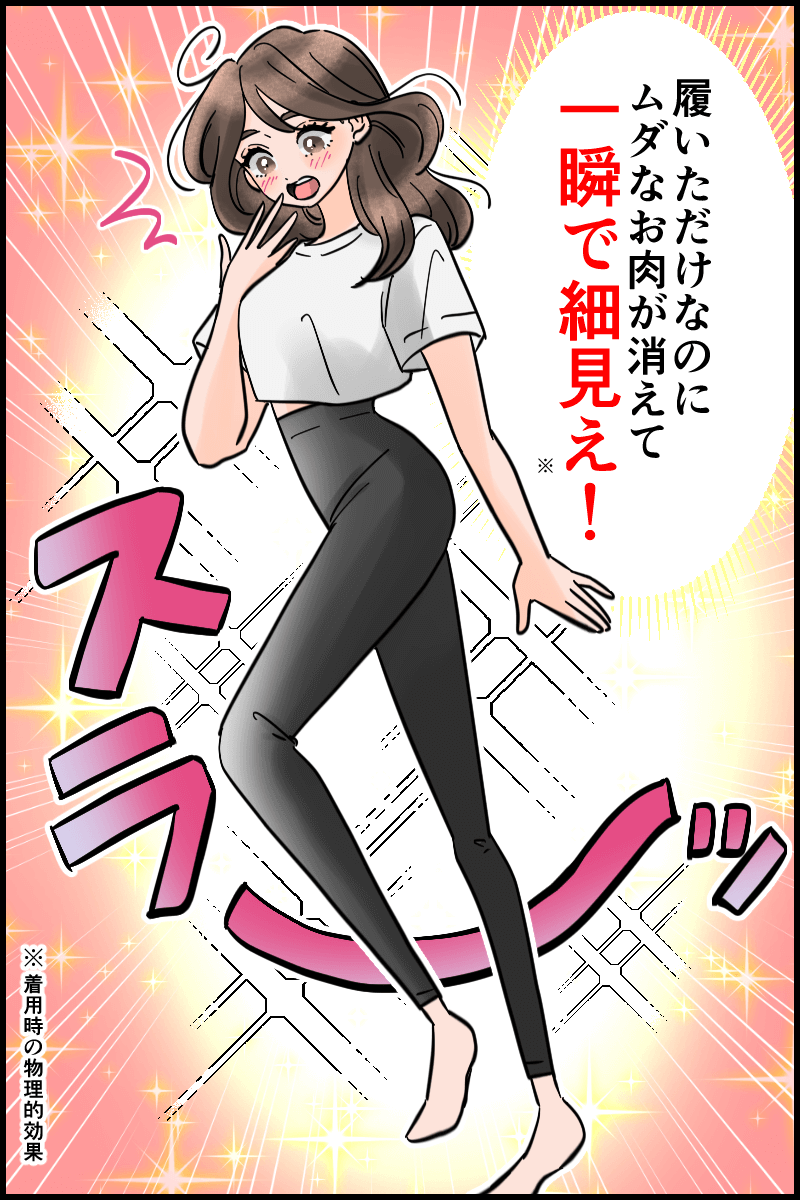 正直ここまで凄いと思ってなかった…。履いた瞬間、太もも削げてない?ってくらい脚細くなった※。